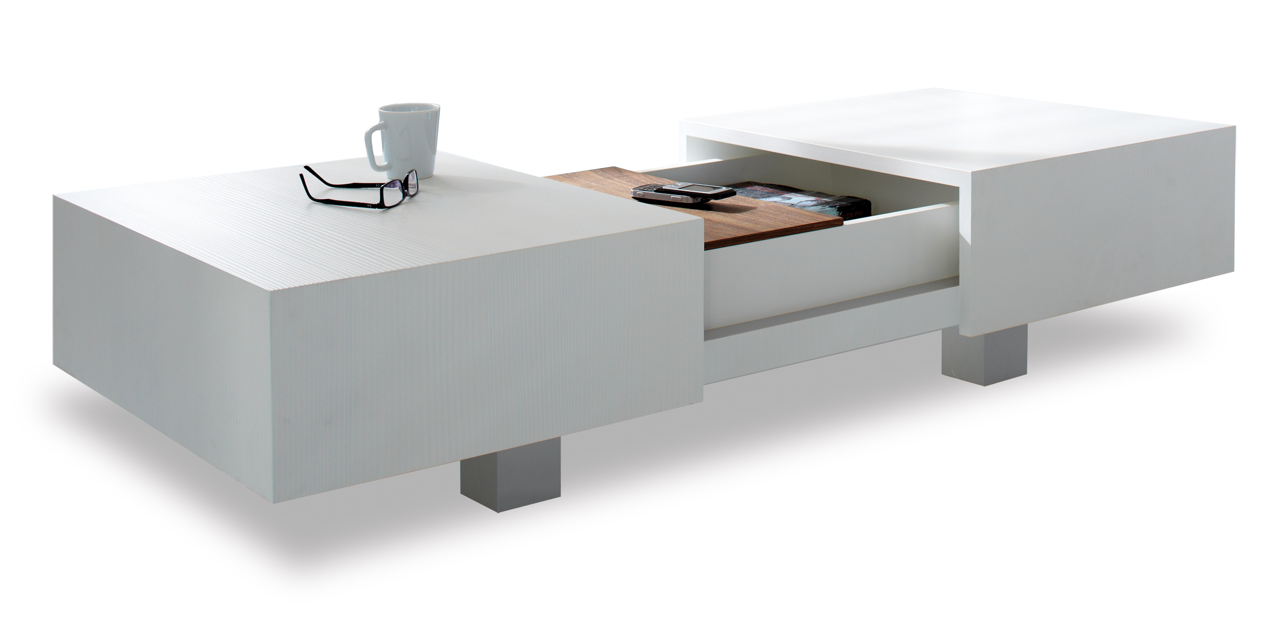 Ein anderer, ganz alltäglicher Gegenstand gab den Anstoß zum Design der stylishen Match Box. Denn ihr Clou, der Ausschiebemechanismus, der in Sekundenschnelle ein geräumiges Ablagefach für allerlei Dinge hervorholt, funktioniert fast so ähnlich wie eine kleine Streichholzschachtel. Davon inspiriert entwarf Schulte seine ganz eigene Version einer englischen „Match Box“. Ein umso schöneres Detail ist dann die mögliche Ergänzung des Möbels mit einem Feuereinsatz, der herkömmliche Kamine alt aussehen lässt. So schnell kann aus einer Streichholzschachtel ein Couchtisch mit Erlebnisfaktor werden.